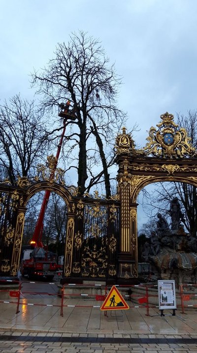 Sur la place Nelson Mandela, à proximité immédiate de la place Stanislas, derrière la fontaine d’Amphitrite et en lien direct avec le parc de la Pépinière, deux marronniers (Aesculus hippocastanum) présentent depuis plusieurs années un dépérissement progressif, avec une descente de cime marquée. Les cavités et défauts observés sur les branches se sont accentués au fil du temps.