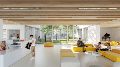 Quatrième pilier : la nature et la qualité du projet architectural. Le bâtiment proposera environ 860 m² de plain-pied, avec une entrée à l’Est, un jardin intérieur à l’Ouest et un autre au Nord. Ces deux jardins seront ouverts au public dès que le temps le permettra. On entrera dans le site via un hall accueillant et le bâtiment sera exemplaire en matière de développement durable. Une architecture moderne, bienveillante participe aussi du succès d’un tel équipement.