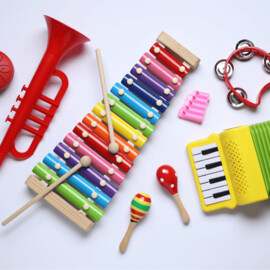 Comptines, jeux de doigts, danse et jeux musicaux avec le corps, manipulation de petits instruments.