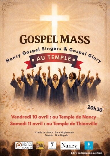 Les Nancy Gospel Singers et le Gospel Glory se retrouvent dans une harmonie chaleureuse pour 2 dates à Nancy (10/4) et à Thionville (11/4).