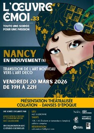 "Aborder ces mouvements conjointement permet de mettre en lumière une continuité artistique et historique, tout en interrogeant les mutations culturelles, techniques et sociales qui ont marqué le début du XXe siècle. Cette soirée propose une immersion au cœur de l’Art Nouveau et de l’Art Déco, deux courants majeurs qui ont profondément marqué l’identité artistique de Nancy et de sa région. Pensée comme un moment de découverte et de convivialité, l’événement invite chacun à explorer ces mouvements emblématiques dans une atmosphère chaleureuse et participative."