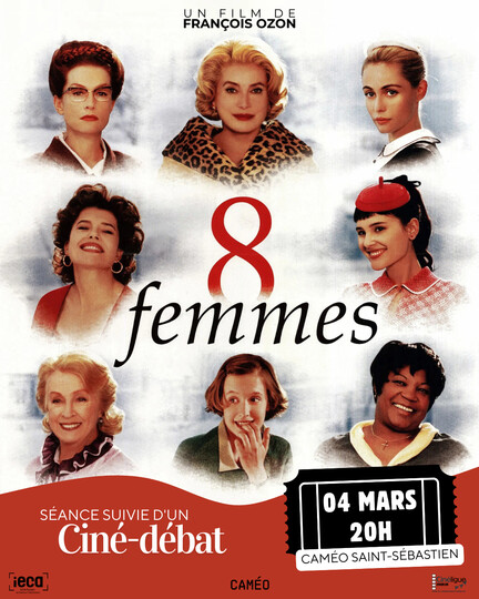 Le mercredi 4 mars à 20h00 au Caméo Saint-Sébastien aura lieu la projection du film 8 femmes de François Ozon, suivie d'une discussion avec le public autour de la thématique du cinéma queer. L'occasion de redécouvrir ce classique du cinéma français sous un tout nouvel angle.