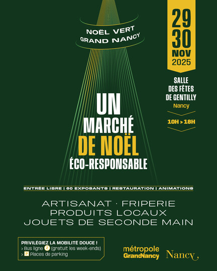 Les fêtes de fin d’année approchent… et si cette année, vous choisissiez un cadeau respectueux de l’environnement ? La Métropole du Grand Nancy, en lien avec la Ville de Nancy, vous invite à la cinquième édition de Noël Vert, le marché de Noël éco-responsable, les 29 et 30 novembre 2025.
