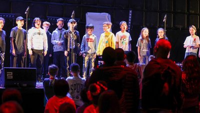 La semaine se clôture par une restitution sur scène, sous forme d’un mini-concert d’environ 15 minutes, où les élèves présentent leur création et participent également au set des artistes intervenants.