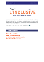 Les missions santé, seniors, diversité - handicap - solidarité s'unissent pour créer une newsletter commune avec l'ambition de vous proposer des informations, des actualités, des conseils, des contacts et tout ce qui pourrait être utile pour vivre encore mieux à Nancy !