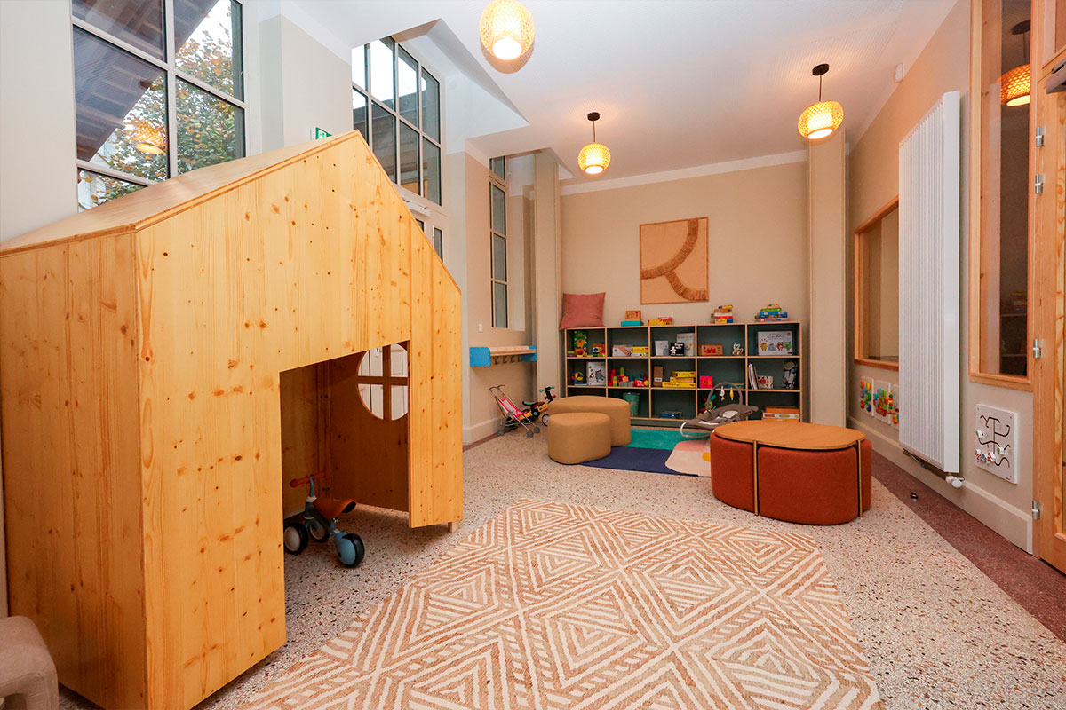 Installée dans l’ancienne école maternelle Charles III, entièrement rénovée et réaménagée, la Maison des Femmes offre un environnement apaisant et respectueux :
